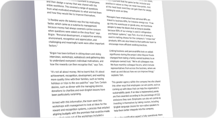 SUSTAINABILITY SPOTLIGHT | 18 SUSTAINABILITY SPOTLIGHT | 19 Discovering motivating factors Creating KPIs that deliver worker engage- A voyage of discovery Becoming a